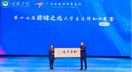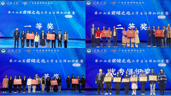 随着颁奖典礼的结束,第十七届“君健之光”大学生法律知识竞赛圆满落下帷幕。这次活动不仅加强了学校与驻桂林兄弟高校之间的友谊,提升了大学生的法律素养,也见证了学校校企协同育人模式的合作成果。