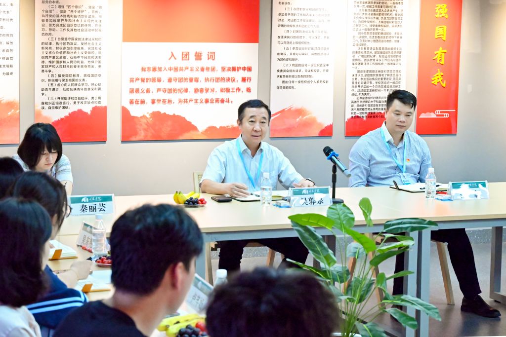 在认真倾听师生发言后,吴郭泉作交流讲话。吴郭泉对广大青年师生一直以来为学校发展的辛勤付出表示感谢,对近年来团学工作所取得的成绩表示肯定。吴郭泉指出,当前学校正处于内涵式发展的关键上升期,校园二期建设项目有序推进,学校将持续优化资源配置,为青年师生成长搭建更广阔的平台。针对师生提出的校园基础设施改善、实践教学资源拓展等诉求,吴郭泉逐一回应,从优化学科专业布局到承诺解决学生活动场地,每项解答都精准对应师生关切。吴郭泉强调,学校始终将“以师生为中心”作为办学的出发点和落脚点,请广大师生要对学校充满信心,随着办学实力的稳步提升,每一份期待都会有所回应。