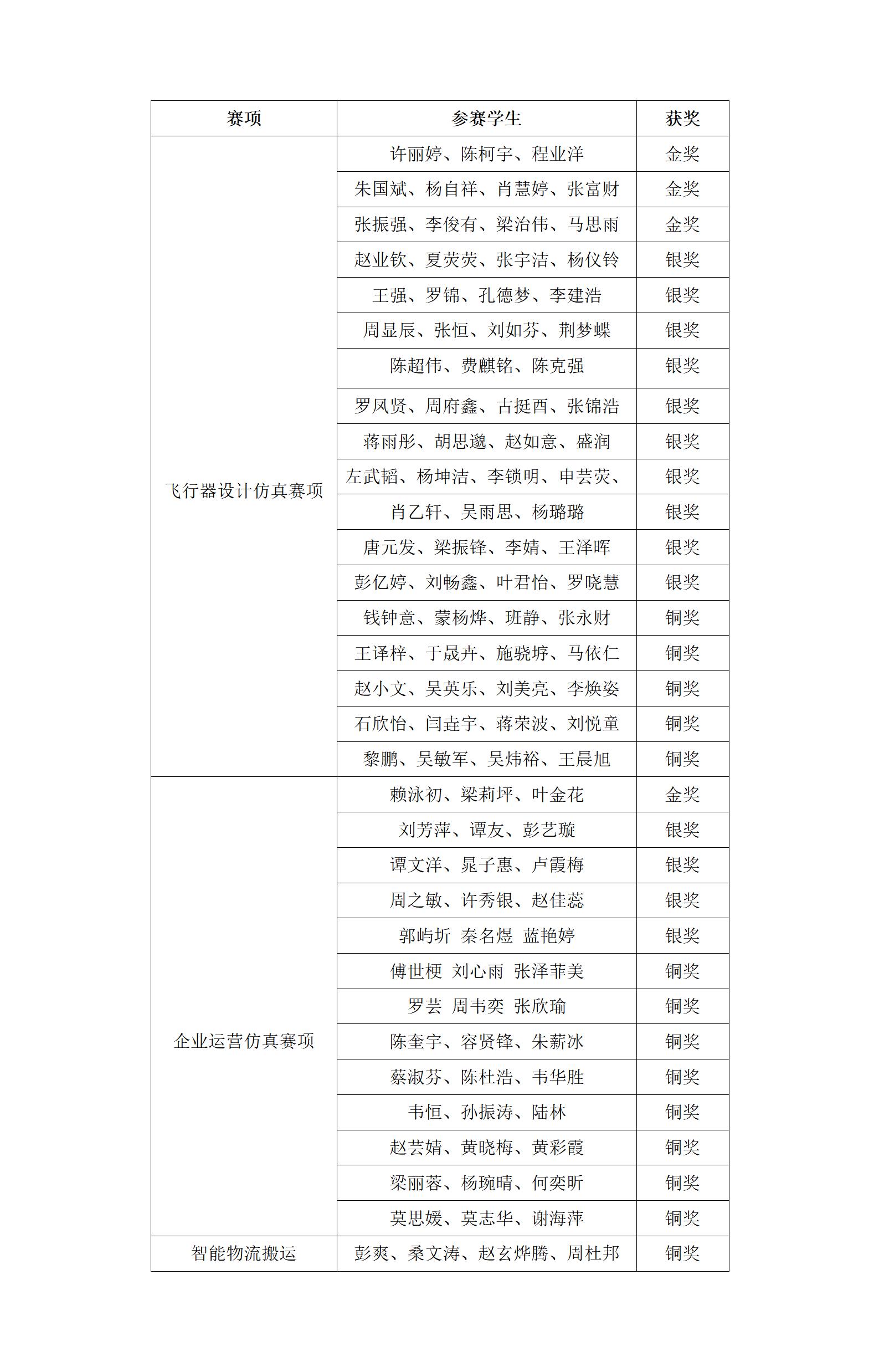本次大赛作为2025年广西高校大学生学科专业竞赛A类赛事,由广西教育厅主办、桂林电子科技大学承办。大赛设置3个赛道9个赛项,我校积极组织学生参与虚拟仿真赛道的飞行器设计仿真、工程场景数字化、企业运营仿真赛项,以及 “智能+” 赛道的智能物流搬运赛项。其中,虚拟仿真赛道成为我校的 “夺金高地”,飞行器设计仿真赛项获取3项金奖、10项银奖、5项铜奖;企业运营仿真赛项收获1项金奖、4项银奖、8项铜奖,智能物流搬运赛项夺得1项铜奖。