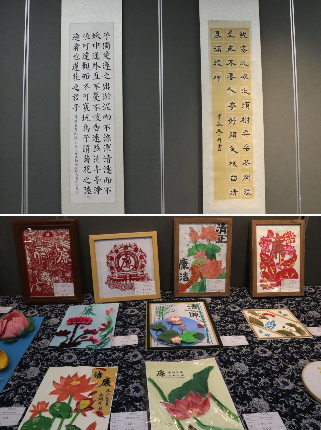 开幕式由教育与音乐学院党总支书记主持,负责的老师介绍了展览的筹备和展出情况,学生代表发表了获奖感言。此次廉洁主题作品展共展出一百余件作品,作品包括绘画、书法和手工作品,既有“出淤泥而不染”的写意荷花,也有“清风两袖朝天去”的铿锵诗句。将“廉”与“美”深度融合,将“清正廉洁”的精神内核转化为水墨丹青、手工技艺,用艺术语言讲述了新时代廉洁故事,这既是学校落实立德树人根本任务的创新实践,更是青年大学生以美术创作践行社会主义核心价值观的生动答卷。
