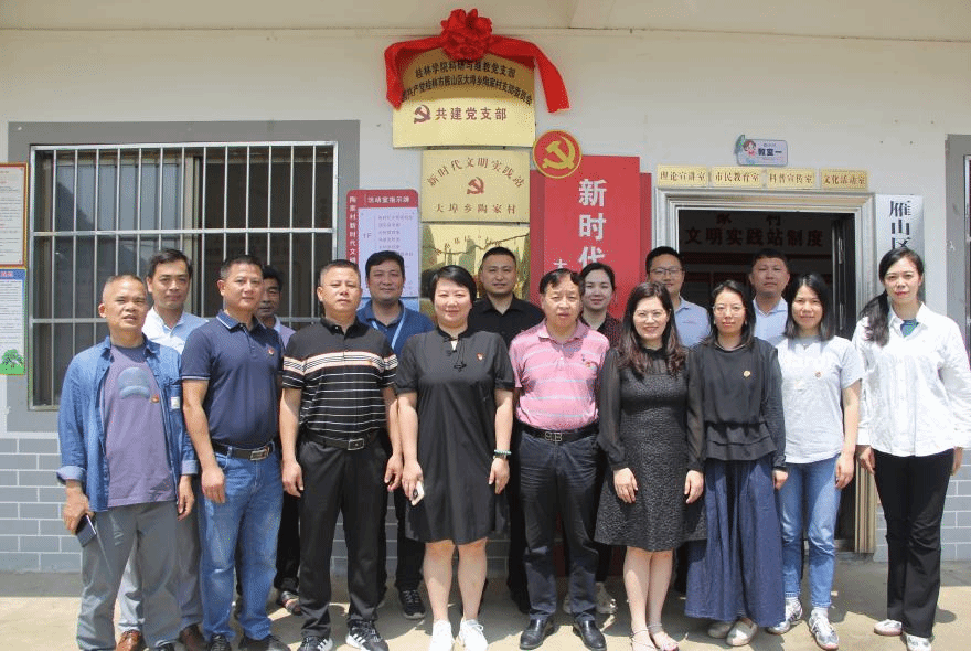 会后,举行了桂林学院科研与继教党支部与中国共产党桂林市雁山区大埠乡陶家村支部委员会共建党支部揭牌仪式。