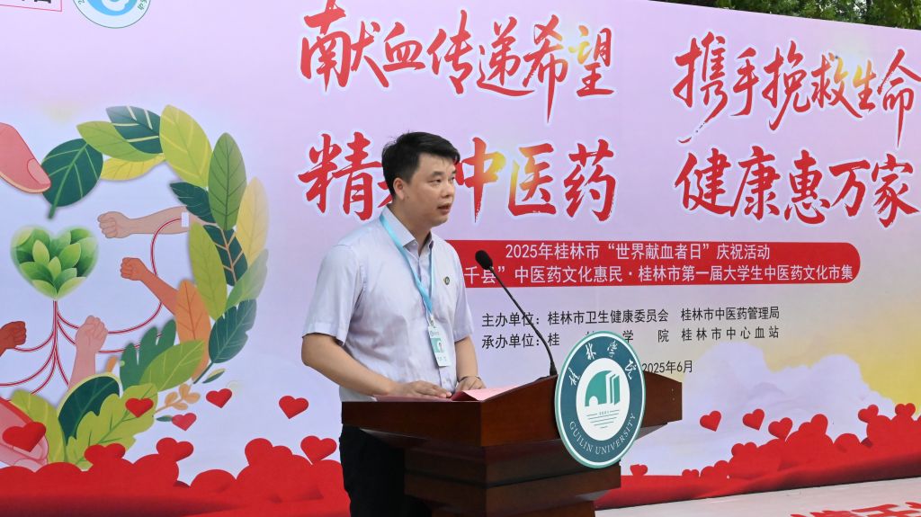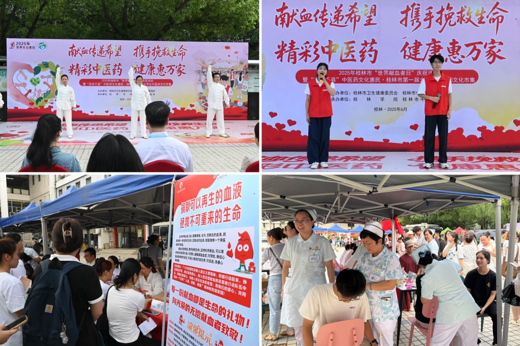 热血传递生命温度,岐黄传承千年智慧。6月16日,2025年桂林市“世界献血者日”庆祝活动暨“百市千县”中医药文化惠民・桂林市第一届大学生中医药文化市集活动在我校成功举办。