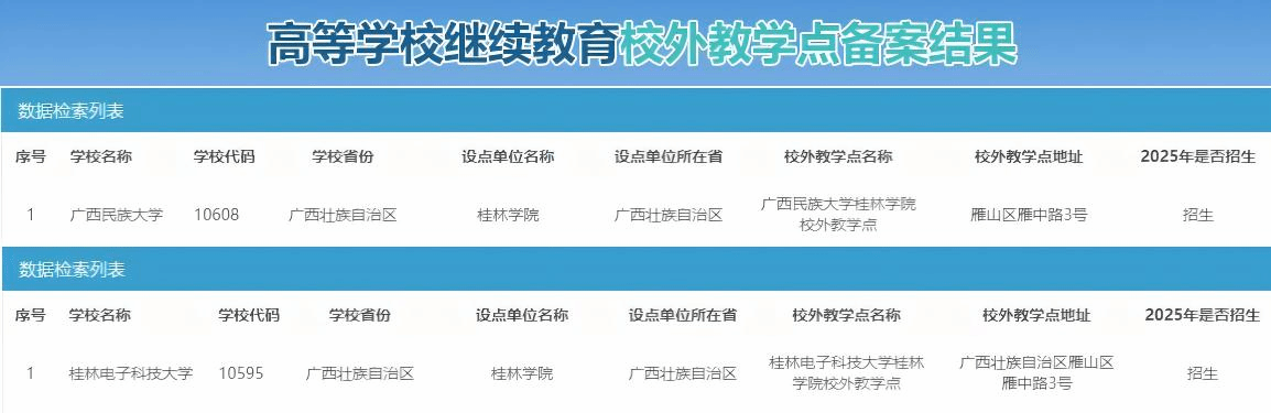 通过本次备案的2所高校的校外教学点