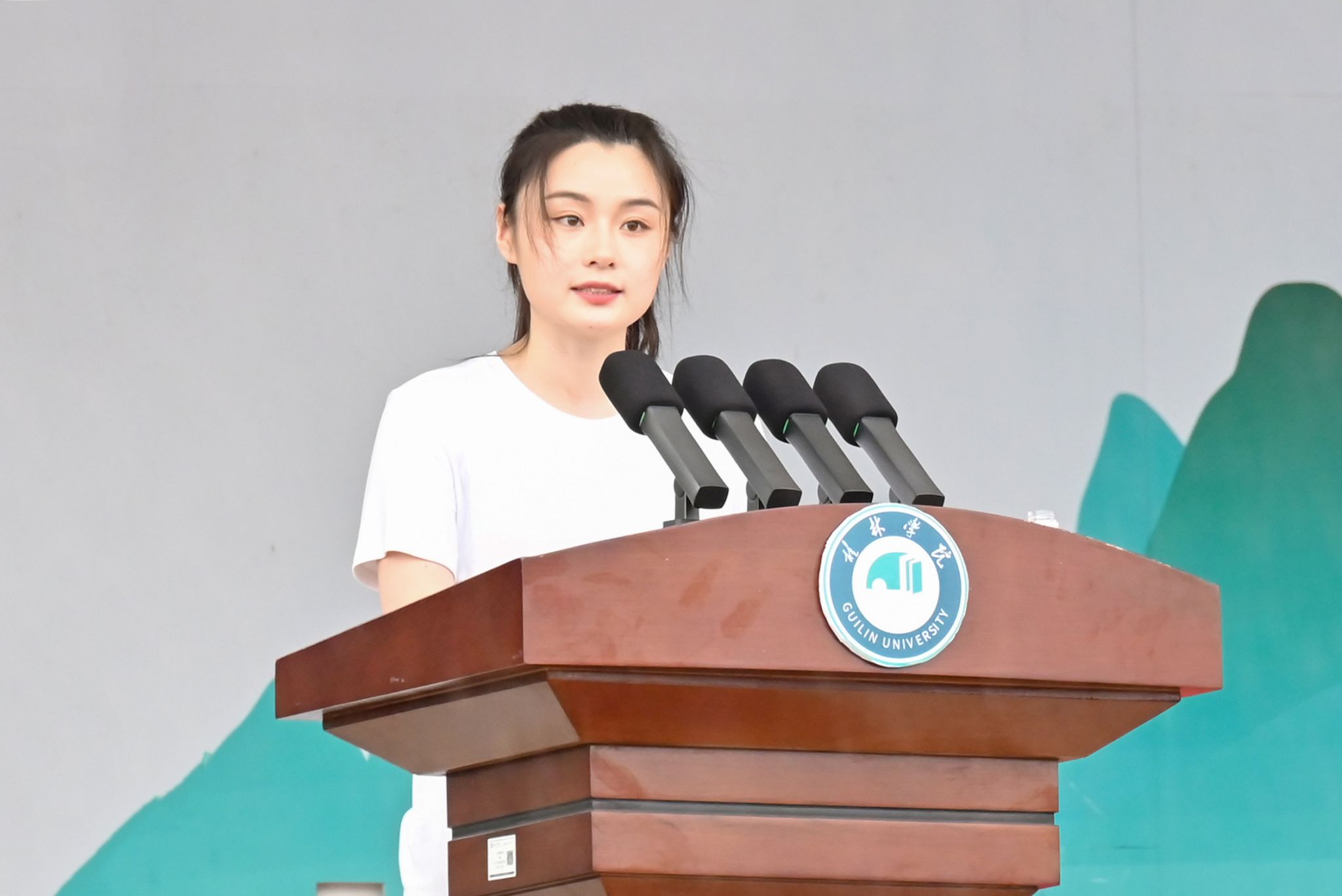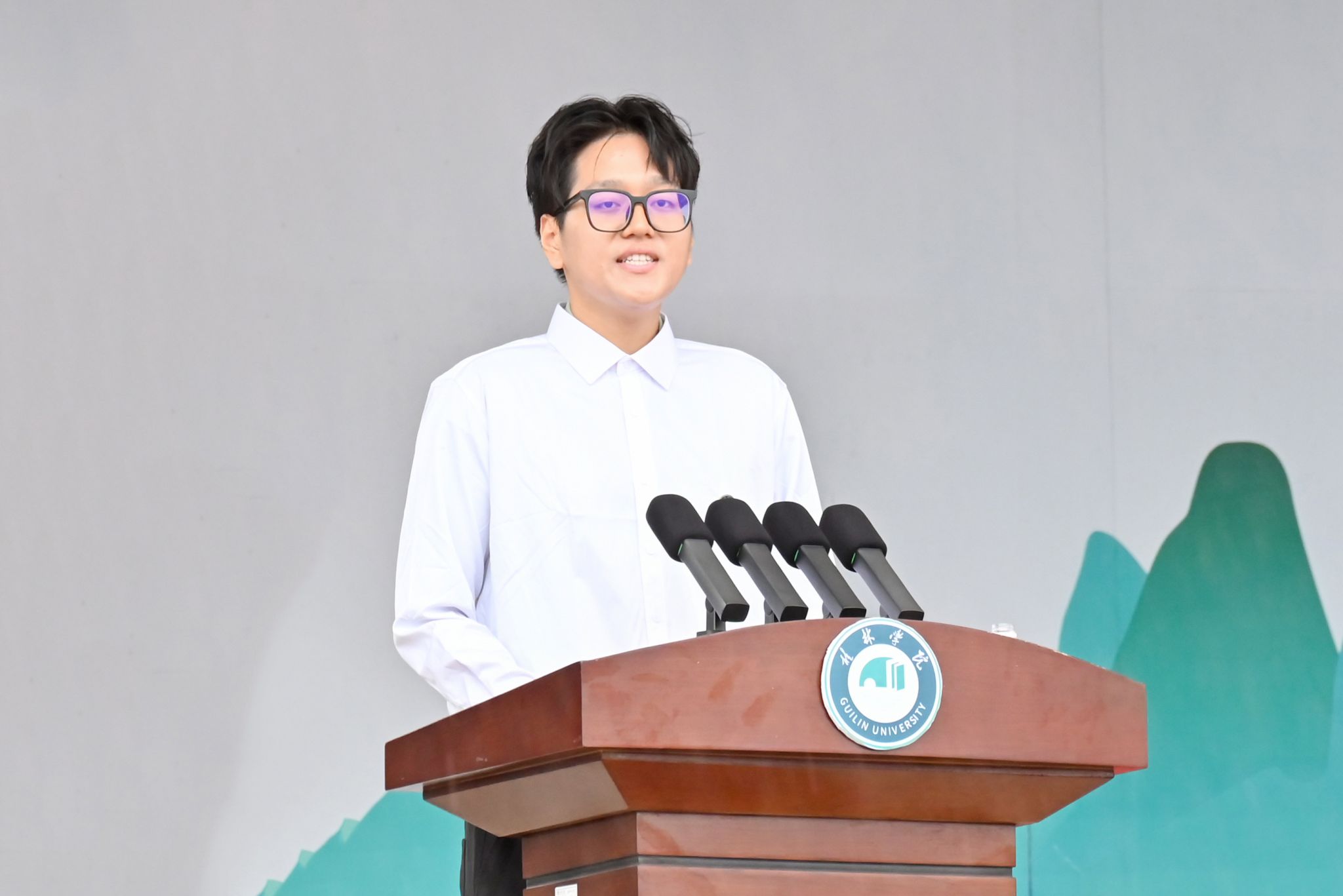 “桂院给我的记忆烙印,是刻在日常里的‘进步感’。”广西师范大学 2025 级学科(历史)专业研究生、桂林学院2021级播音与主持艺术专业毕业生陈宜作为校友代表发言,分享了自己考研深造的心路历程,他倡议学弟学妹们践行“向学、向善、自律、自强”校训精神,为铸造“走向成功的桥梁”和“造就人才的殿堂”贡献年轻桂院人的力量。