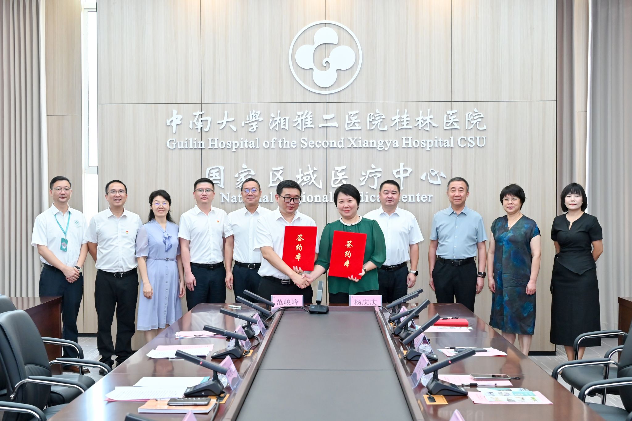 为推进落实桂林市委、市政府的决策部署,响应国家区域医疗中心建设战略,推动优质医疗资源扩容与均衡布局,9月19日上午,在市委、市政府的大力支持下,学校与中南大学湘雅二医院桂林医院(国家区域医疗中心)签署战略合作框架协议。学校董事长陶毅,校领导吴郭泉、康庚莲、杨庆庆,中南大学湘雅二医院桂林医院领导刘先领、李明、范伟娟、范峻峰及双方中层干部代表出席本次签约仪式。签约仪式在湘雅二医院桂林医院临桂院区举行。