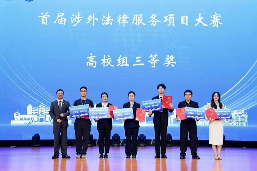 11月8日,全国首届涉外法律服务项目大赛决赛在广西民族大学落下帷幕。我校《跨域智盾——广西中小企业知识产权守护者》项目凭借扎实的专业基础与出色的现场表现成功晋级决赛,并且荣获全国总决赛三等奖、“优秀指导教师”奖。我校成为决赛获奖团队中唯一的民办高校,充分展现了我校学子的卓越风采与应用型人才培养成效。这是我院实践导向型涉外法治人才培养取得的又一重大成果。