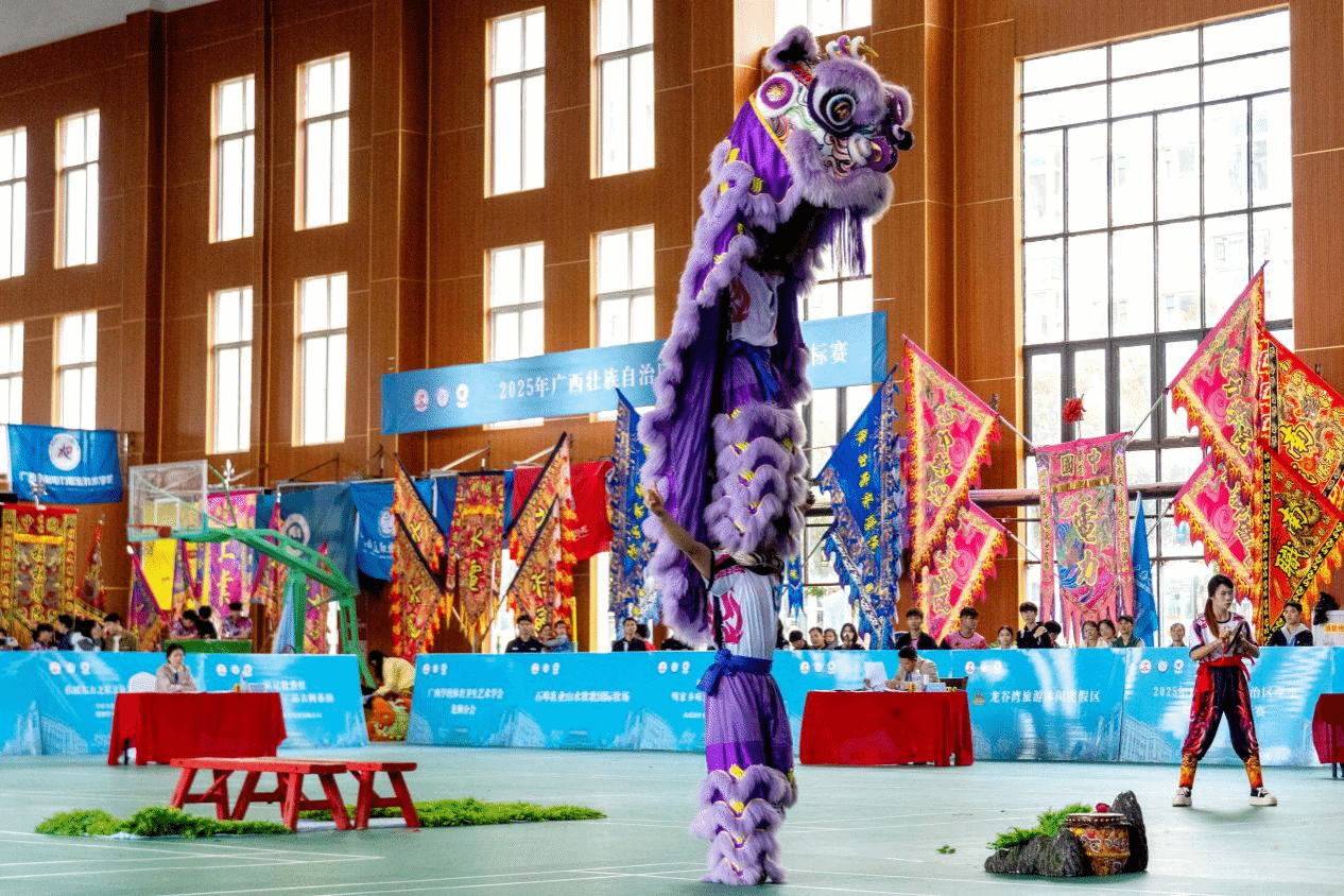 近期,由广西学校体育卫生艺术学会主办的2025年广西壮族自治区学生舞龙舞狮锦标赛在桂林理工大学南宁分校举行。学校龙狮代表队派出10名运动员参加体育专业组男子传统南狮和普通本科组女子传统南狮两个单项角逐,经过激烈角逐,我校龙狮代表队获普通本科组女子传统南狮第一名、体育专业组男子传统南狮第六名的好成绩。