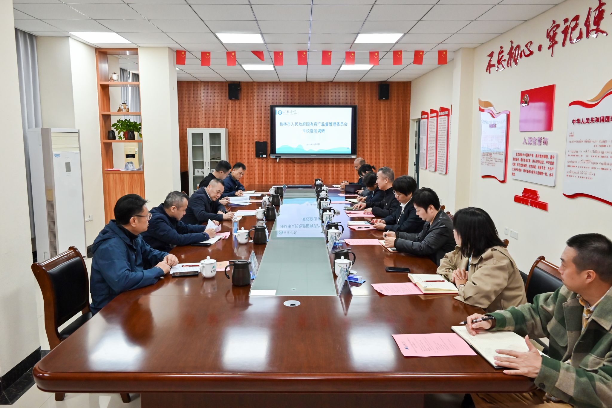 调研结束后,由赵家维主持召开座谈会。市国资委党委委员、副主任闪辉,桂林城建集团总裁肖笛波、党委副书记诸葛长,学校校长吴郭泉及其他在家校领导、财务总监、校园二期项目部总负责人参加座谈。