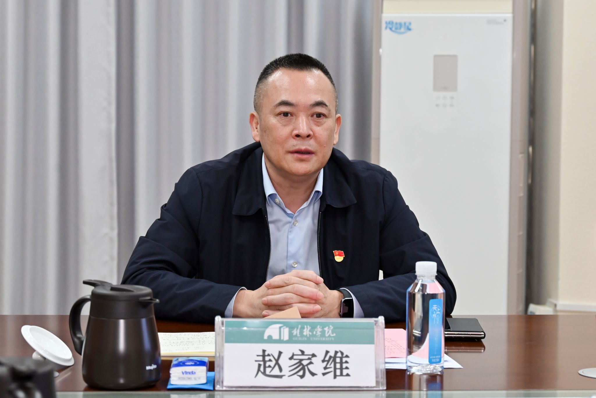 赵家维充分肯定了学校的办学成效与发展思路,并围绕校地国企协同、学校高质量发展提出要求与建议。赵家维指出,桂林城建集团与学校要“分工不分家”,心往一处想、劲往一处使,凝聚发展合力。学校要精准明确办学定位与特色,紧密契合桂林世界级旅游城市核心定位,实现办学与地方发展同频共振。赵家维强调,学校要高起点谋划学科专业设置,聚焦差异化发展,避免同质化竞争,打造核心办学优势;要强化市场化运作思维,加强成本核算与绩效管理,提升办学与项目建设的质效;要充分认识人才培养质量与管理制度建设的重要性,以优质人才输出与规范管理支撑长远发展;要加强协同配合,提前谋划、扎实做好相关评估准备工作;要做好校园安全管理,施工单位需严格遵守学校教学秩序,筑牢安全发展防线。赵家维表示,市国资委将全力推动市属国企与学校深化合作,在产教融合、项目共建、人才输送等方面给予全方位支持。
