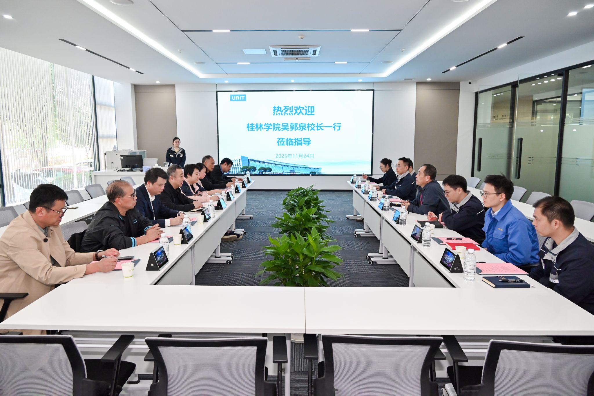 为落实教育部“访企拓岗促就业”专项行动要求,精准对接医疗健康产业人才需求,11月24日下午,校长吴郭泉带队赴桂林优利特医疗电子有限公司考察学习,双方就人才联合培养、科研协同攻关、产教融合实训基地建设、拓宽学生就业渠道等议题达成多项初步共识。桂林优利特电子集团有限公司常务副总裁吕振兴接待了考察组一行,双方开展座谈交流。副校长杨庆庆、蒋毅参加考察学习。