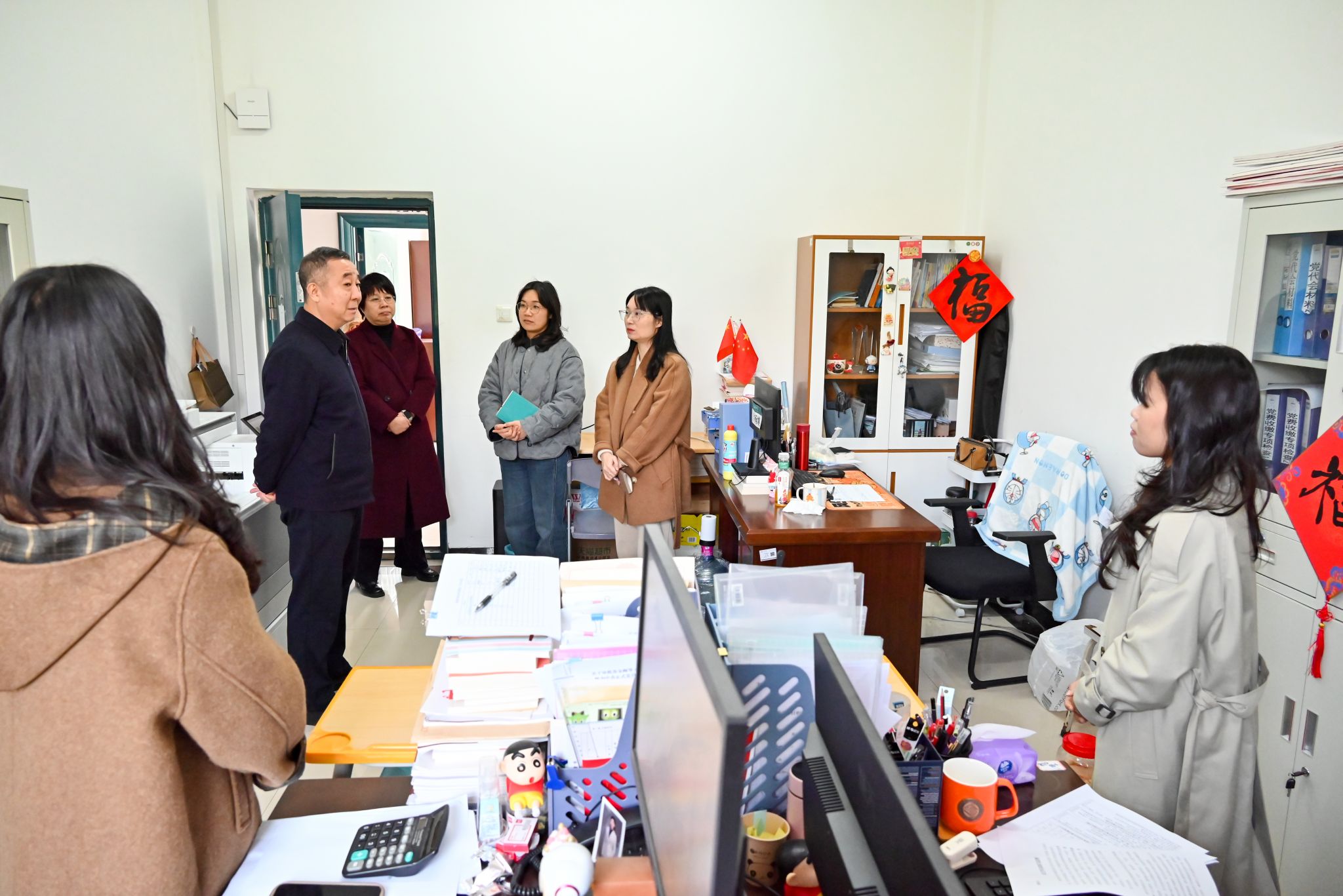 检查组到各二级单位开展检查,与教职工亲切交谈