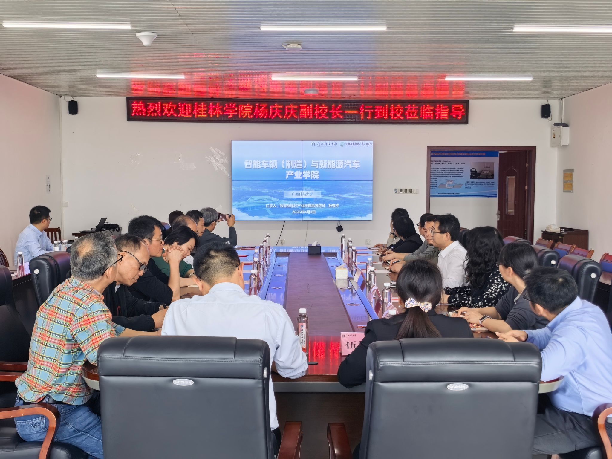 为学习借鉴现代产业学院建设的先进做法,进一步提升应用型人才培养质量,4月3日上午,副校长杨庆庆率队一行25人赴广西科技大学开展专题学习交流。广西科技大学副校长李健及相关部门负责人热情接待并陪同考察。
