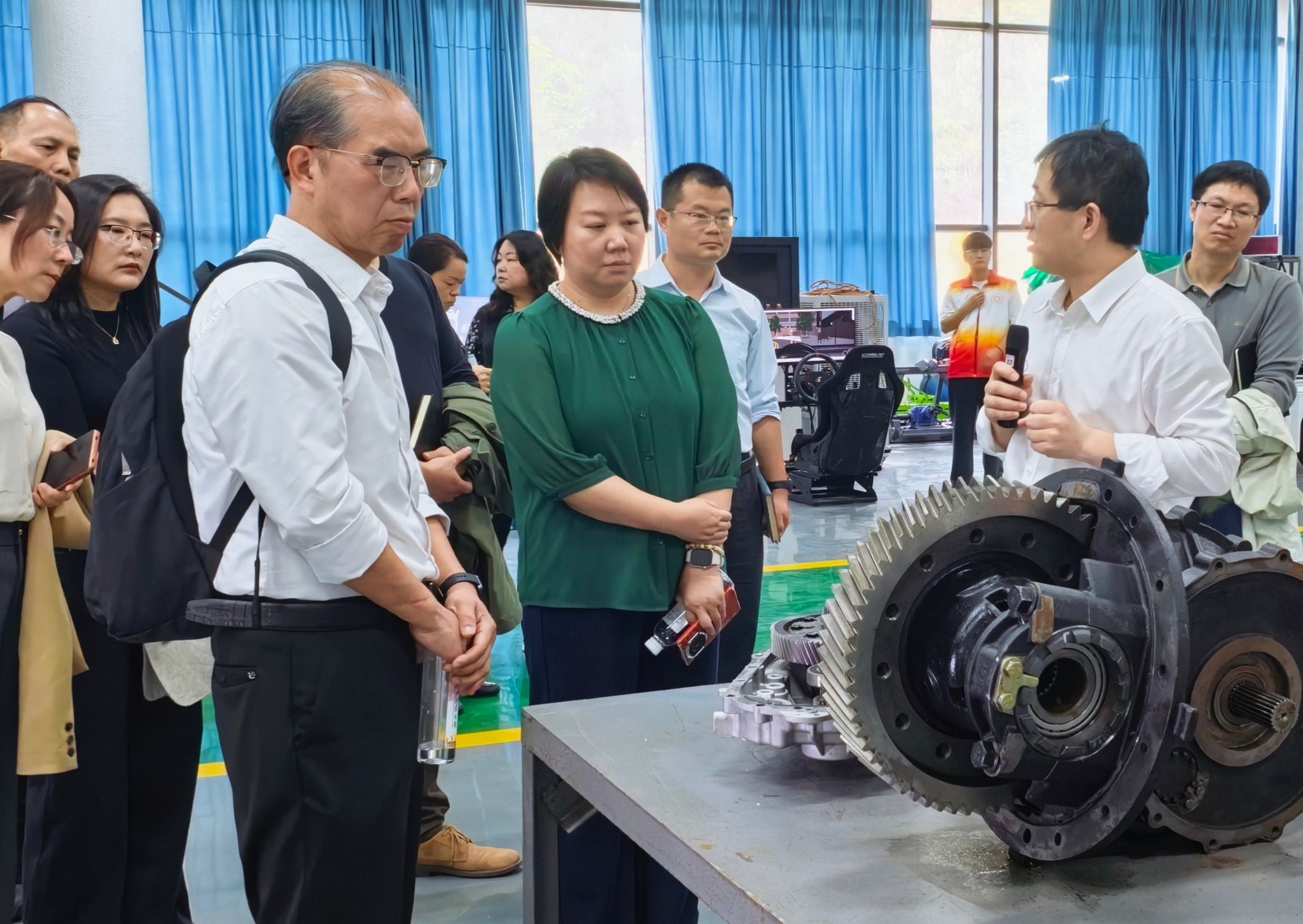 考察团先后走访了广西科技大学天虹现代纺织产业学院、智能车辆(制造)与新能源汽车产业学院。天虹现代纺织产业学院副院长岳新霞、智能车辆(制造)与新能源汽车产业学院院长孙有平围绕产业学院的建设背景、运行机制、产教融合模式及人才培养成效等方面作了专题经验分享。双方还就产业学院的组织架构、课程共建、师资队伍建设和学生实践能力培养等议题进行了深入座谈交流。