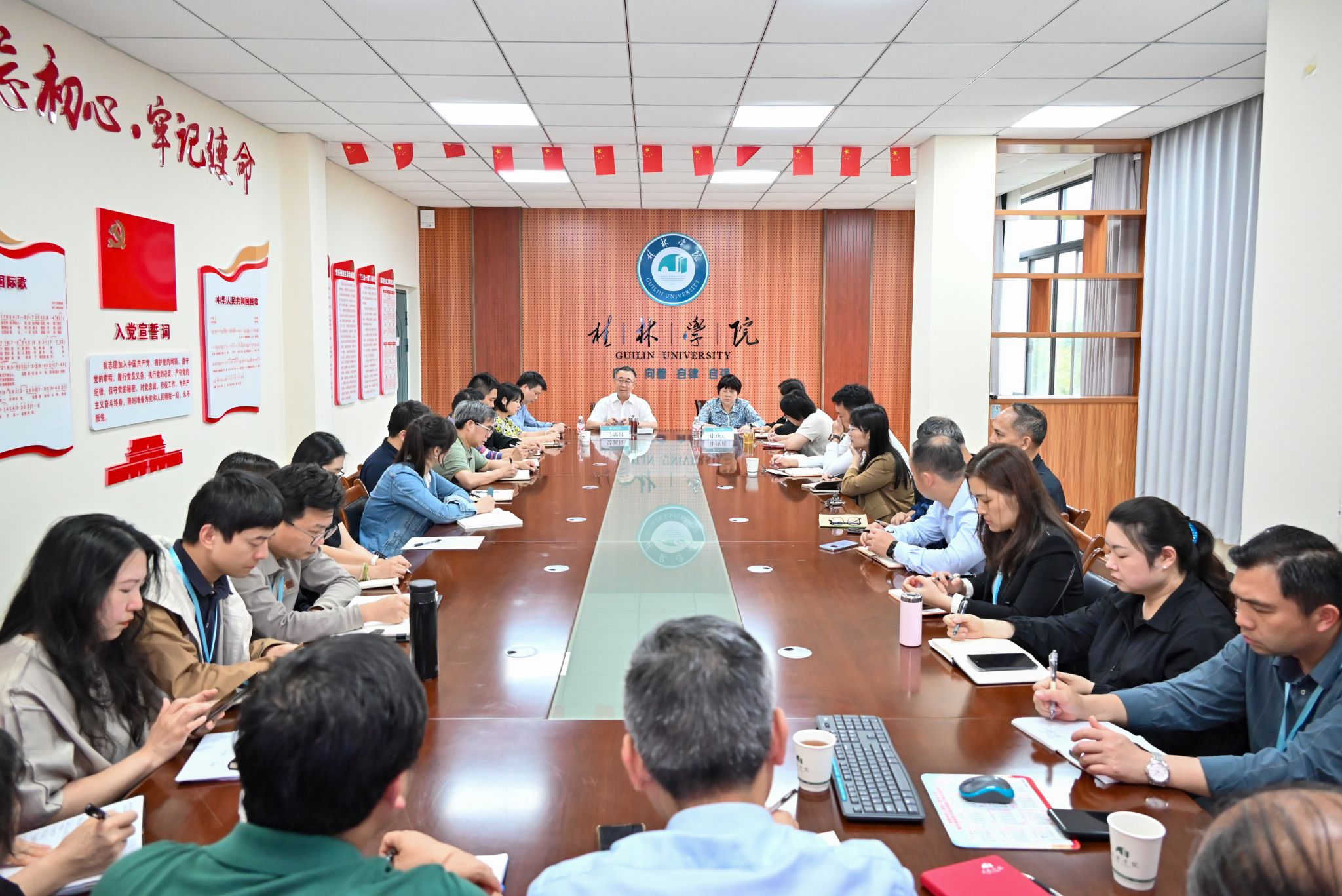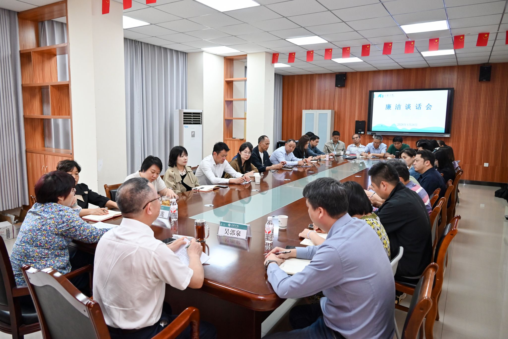 吴郭泉作廉政集体谈话。他通报了近期发生在身边的警示案例,指出高校已被列为权力集中、资金密集、资源富集领域,全国及广西教育系统反腐力度持续加码。当前学校处于评估冲刺攻坚、二期建设爬坡过坎关键期,校园基建、实验室建设等大批工程项目同步推进,招标采购、资金使用、工程管理等环节廉政风险突出,必须早提醒、早预防、早警示。吴郭泉强调,全体管理干部要提高政治站位,深刻认识特殊时期廉政建设极端重要性,严禁在评估工作中数据造假、材料美化,坚守真实底线;在校园二期建设工作中要严守规范流程,打造廉洁工程、优质工程、放心工程。