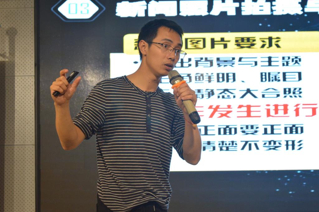 培训中,传媒学院新闻学专业教师谭子龙应邀作专题讲座。他主要围绕校园新闻写作、校园新闻的宣传方针、新闻照片的拍摄与处理、人物采访等几个方面展开讲解。通过翔实的案例分享,向参训师生传授了校园新闻采写的经验技巧。