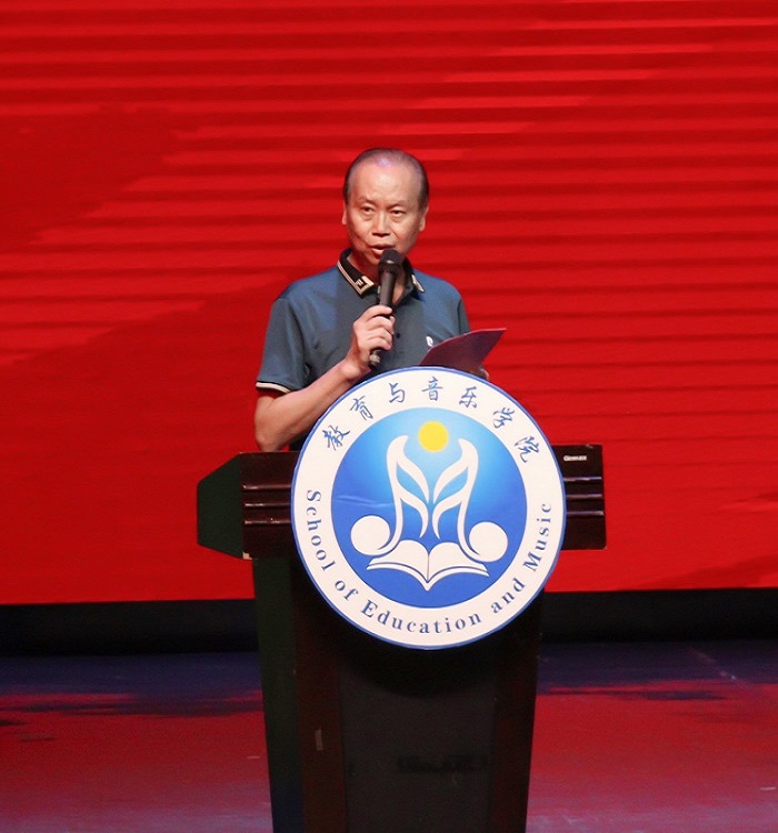表彰大会最后,邓志平副书记做总结发言。他充分肯定了一学年以来教育与音乐学院所取得的成绩,对登台领奖的获奖师生表示祝贺。同时,邓副书记也指出了学院在工作、管理方面的不足和改进方向。邓志平副书记对教音学院提出了三点希望,一是继续深入推动党史学习教育,把党史学习与专业和日常融合;二是全员上下要加强团结,本着建设和谐务实的态度,形成工作合力。三是大力营造风清气正的、积极进取的团队文化,在文化氛围感召下,共同成长进步。
