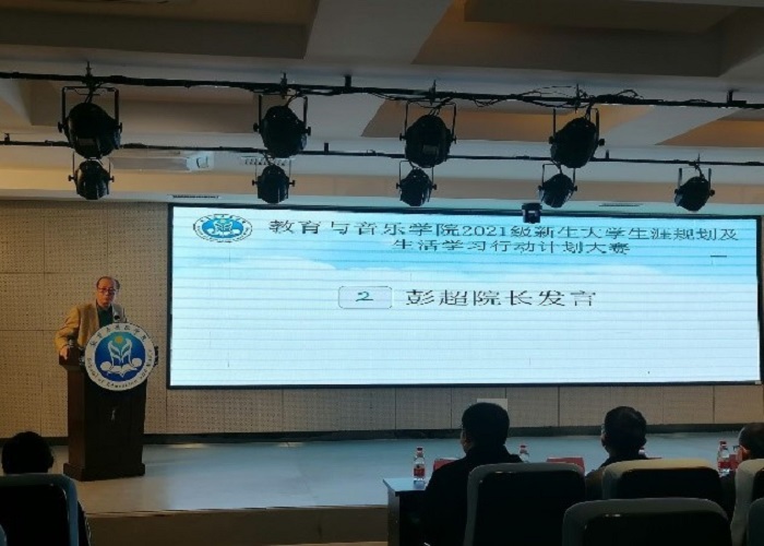 为促进2021级新生更加深入了解大学生活,把握各阶段学习特点,正确认识自我,立足自身情况,规划好大学生活并强化落实,12月10日晚,教育与音乐学院党总支、青协教音分会在至善讲堂联合举办了“2021级新生大学生涯规划及生活学习行动计划”大赛。院长彭超、总支书记周杰及部分辅导员老师出席,2021级新生代表参加了比赛。