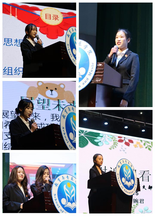 大会开始,全体共同齐唱中国共青团团歌《光荣啊!中国共青团》。各团支部代表围绕支部特色、思想引领、组织建设、学风建设、社会实践等方面以PPT及快闪视频等形式进行述职汇报,并针对目前不足提出改进方式和未来展望。