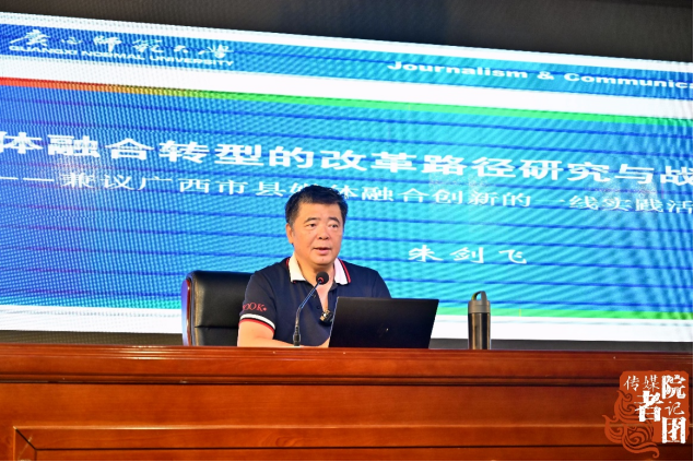 朱剑飞教授向同学们分享对广西市县媒体融合的调研成果