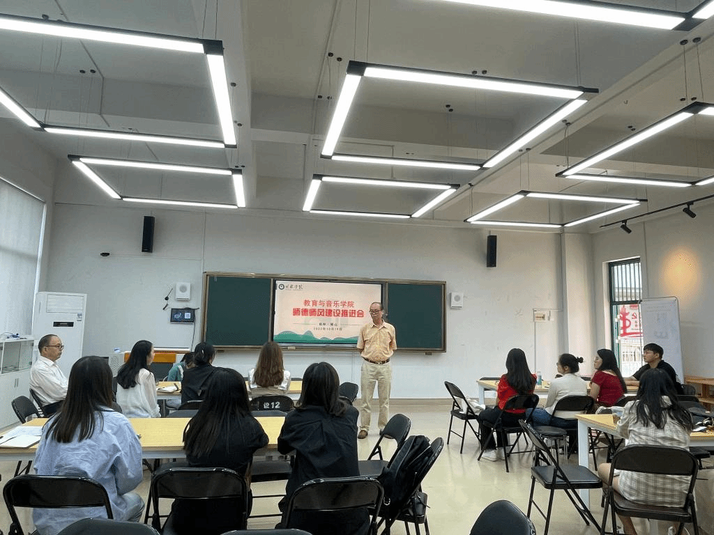 为进一步加强师德师风建设,切实提高学院师德师风建设水平,引导广大教师争做“四有”好老师,根据学校推进清廉学校建设实施方案,教育与音乐学院于10月19日召开师德师风建设推进会,会议由教工党支部书记梁业梅主持。本次推进会主要有本年度新进教职工和外聘老师参加。