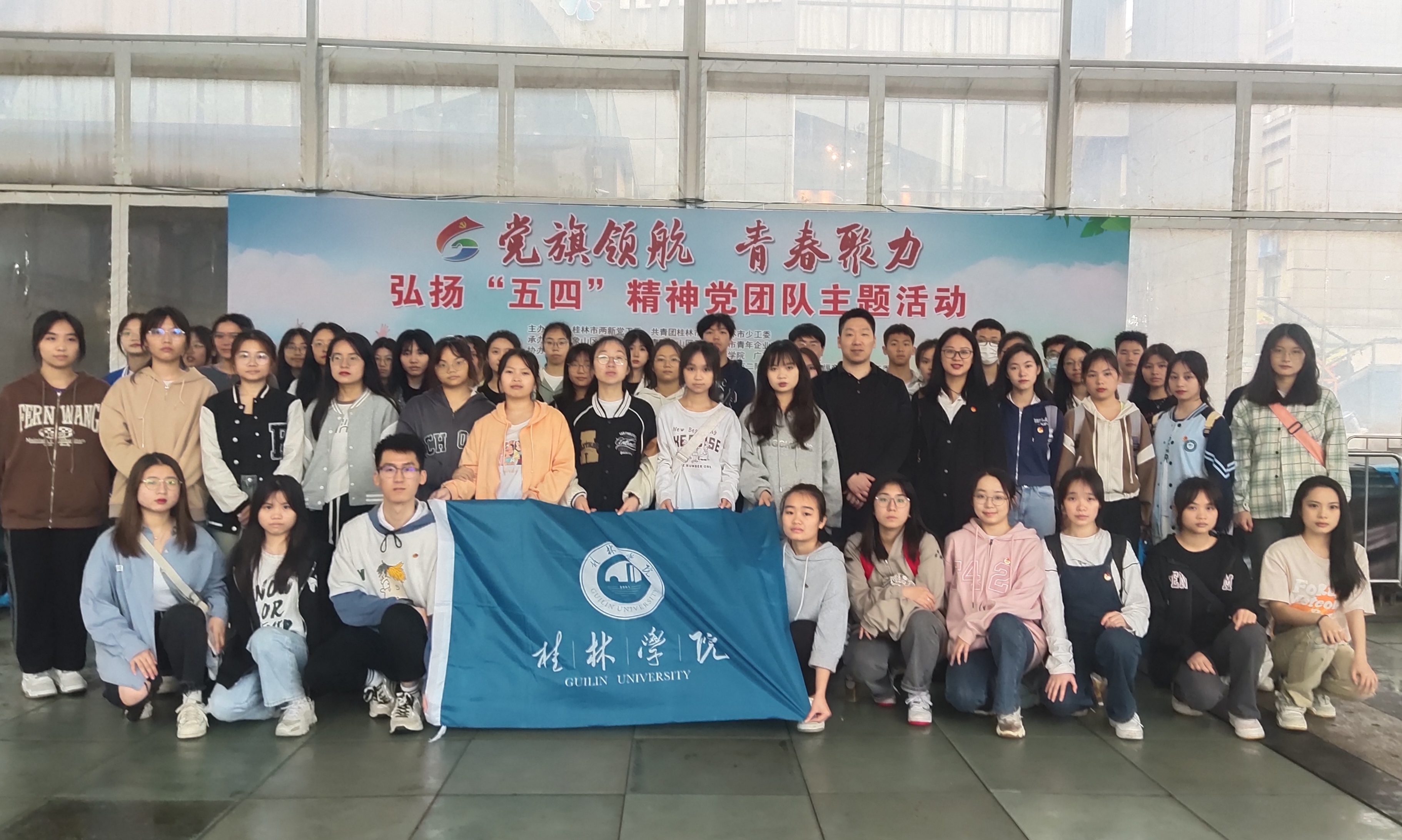 弘扬五四精神,汇聚青春力量。4月28日上午,由桂林市两新党工委、团市委、市少工委主办,象山区委组织部、团象山区委、市青年企业家协会承办的“党旗领航 青春聚力”弘扬“五四”精神党团队主题活动在万福广场顺利举行。我校50名青年师生代表参加本次活动。