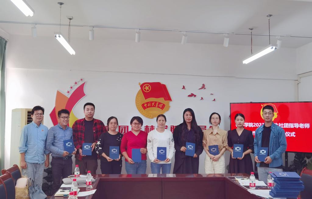 图:校团委负责人为学生社团指导老师代表颁发聘书