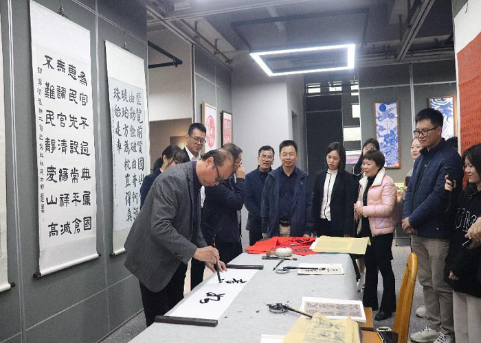 优秀协同育人单位一行参观了学前教育专业的美术作品展,教育学院黄红韩老师详细的介绍了美术作品的创作过程,以及结合桂林山水与优秀传统文化创作的作品内涵。教育学院院长彭超现场书画,展示了精湛的艺术功底。协同育人单位认真的查看了师生将民族传统文化教育、审美教育等元素有机结合起来创作的作品,并观摩我院师范专业实验实训室建设与实训课堂,肯定了我校师范专业教育的成效。
