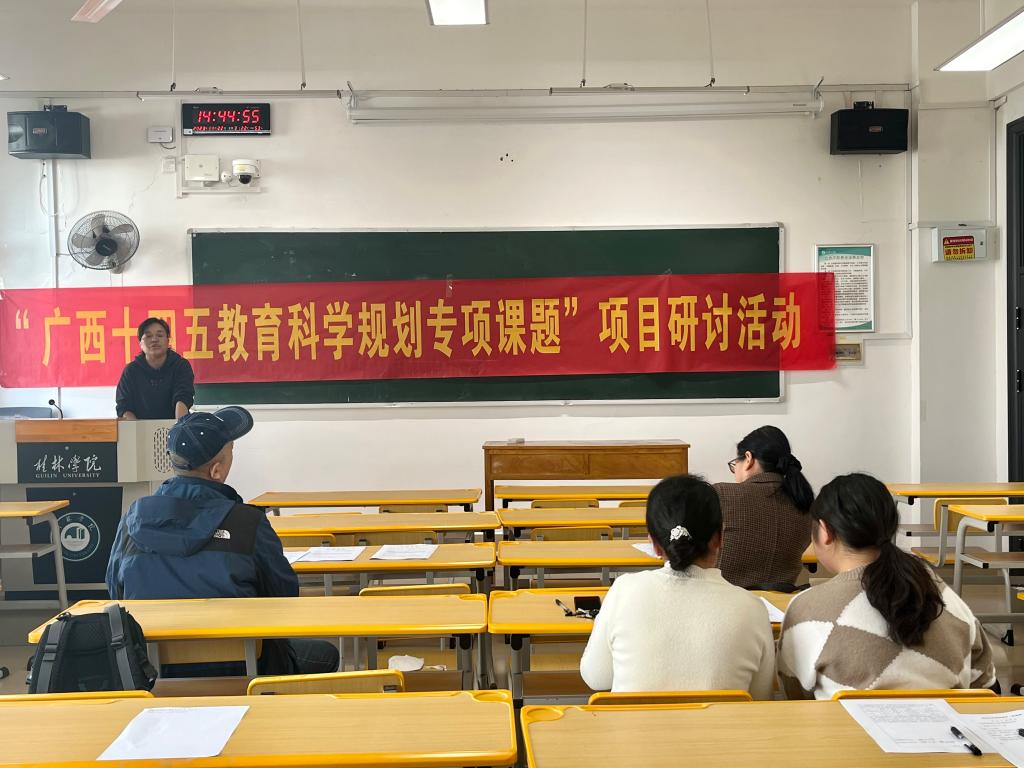 11月22日下午,人文学院在2406教室开展广西“十四五”规划2023年度普通高校师范专业认证专项课题开题报告活动。雁山中学教授雷丽娜,学院首席教授陆巧玲,学校教务与产教融合处副处长肖立章出席活动,学院教授傅广生以及四项课题负责人参加活动。