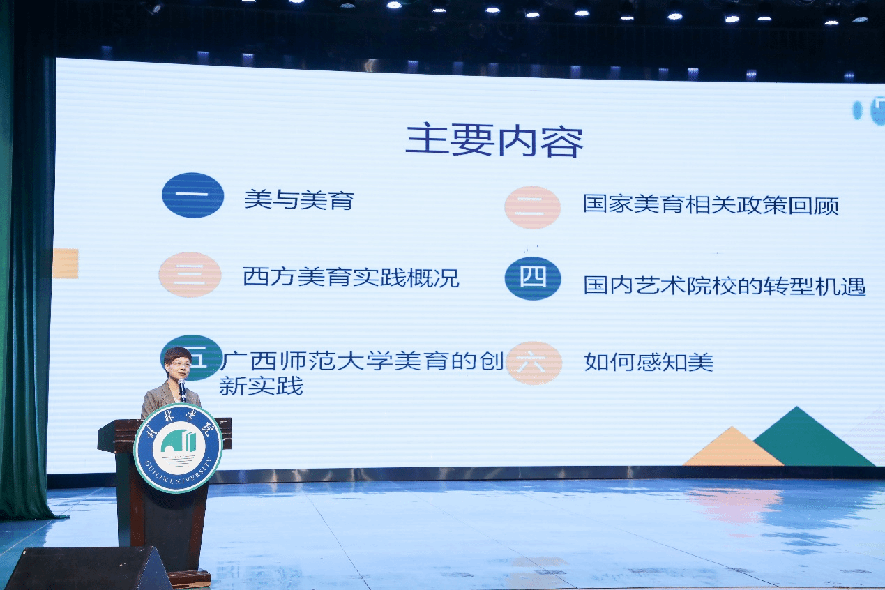 为提升学生审美感知力,积累审美经验,养成独立的审美品格。11月15日,图书馆在弘善讲堂组织开展以“依托美育涵养地方高校艺术教育文化土壤”为主题的讲座。讲座由广西师范大学美术学院副院长、硕士生导师,国家社科基金艺术学专项鉴定专家,广西文艺评论家协会副主席、广西美术家协会理论艺委会副主任陆丽娟教授主讲,各二级学院学生近500人参加讲座。