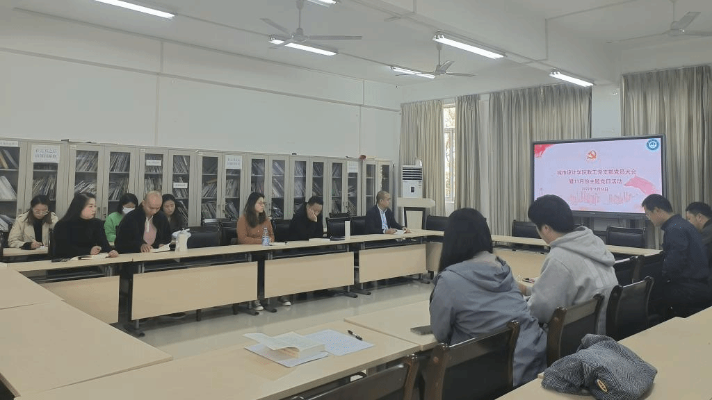 11月24日下午,城市设计学院教工党支部在嘉善楼213会议室召开支部党员大会。教工支部全体党员参加会议,会议由教工党支部书记葛之刚主持。