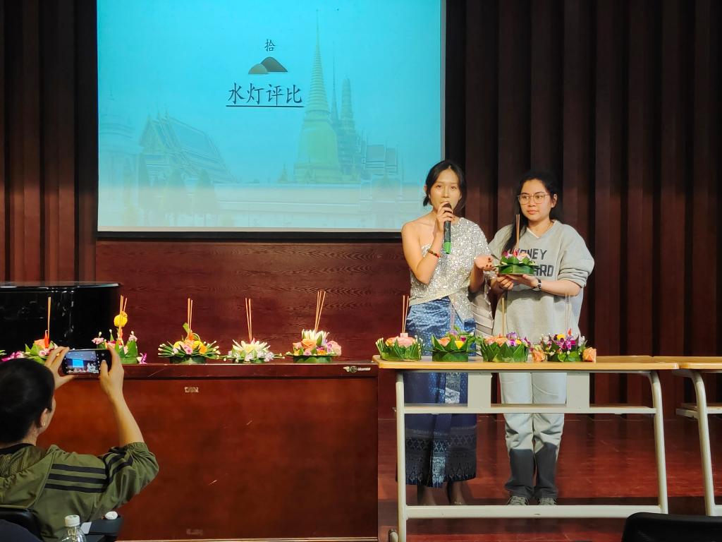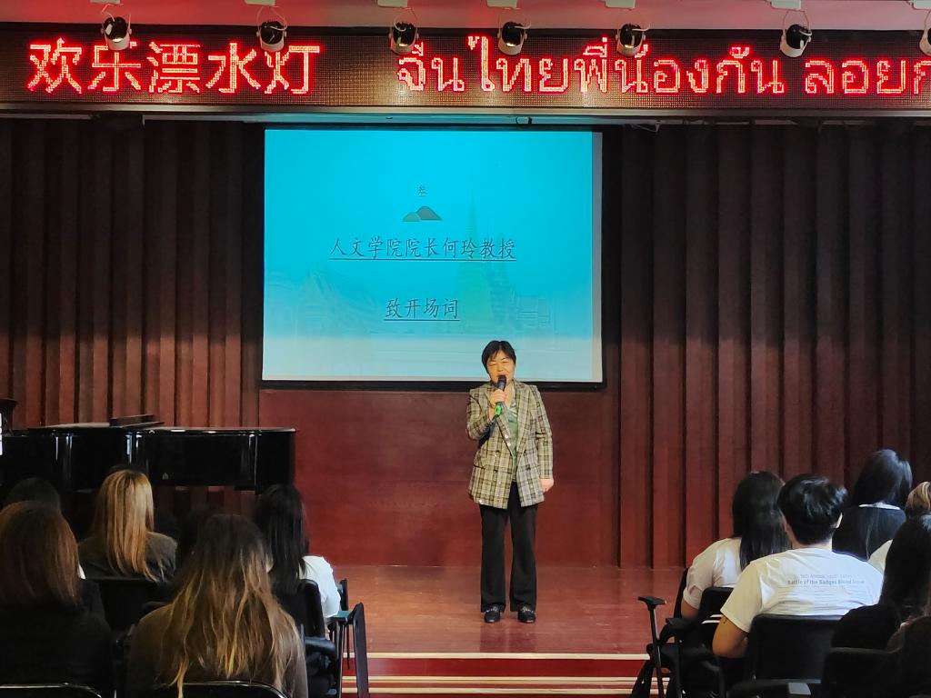 11月26日,人文学院在嘉善楼音乐演艺厅举行“中泰一家亲,欢乐漂水灯”水灯节主题文化育人活动。副校长、人文学院院长何玲出席活动并致辞。广西师范大学泰国留学生、学校泰语专业全体师生以及泰国文化爱好者共计200余人参与了这场中泰文化的交流盛会。