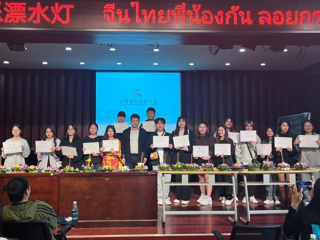 整个水灯节活动包含多个独具特色的环节,涵盖中泰学生歌舞表演、水灯节文化知识竞答、水灯的制作和评比、颁奖等环节。中泰学生通过生动活泼的歌舞表演展示各自文化的魅力,将现场氛围推向高潮。文化知识竞答环节激发了学生对中泰文化深层次了解的热情,展现了他们对两国文化的热爱和深入探索。水灯的制作和评比是整个活动的亮点,学生们在欢声笑语中动手制作自己的水灯。在这个过程中,他们不仅加深了对彼此文化的理解和尊重,还通过评比展示了各自精巧的构思和文化创意。