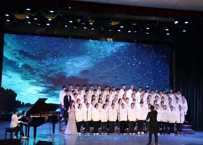 随着合唱《夜空中最亮的星》的悠扬旋律,新生联欢晚会接近尾声,观众们的掌声和欢呼声如同海浪般涌向舞台,全体表演人员用最真挚的情感和淋漓尽致的表演为教育学院新生联欢晚会划上了圆满的句号。