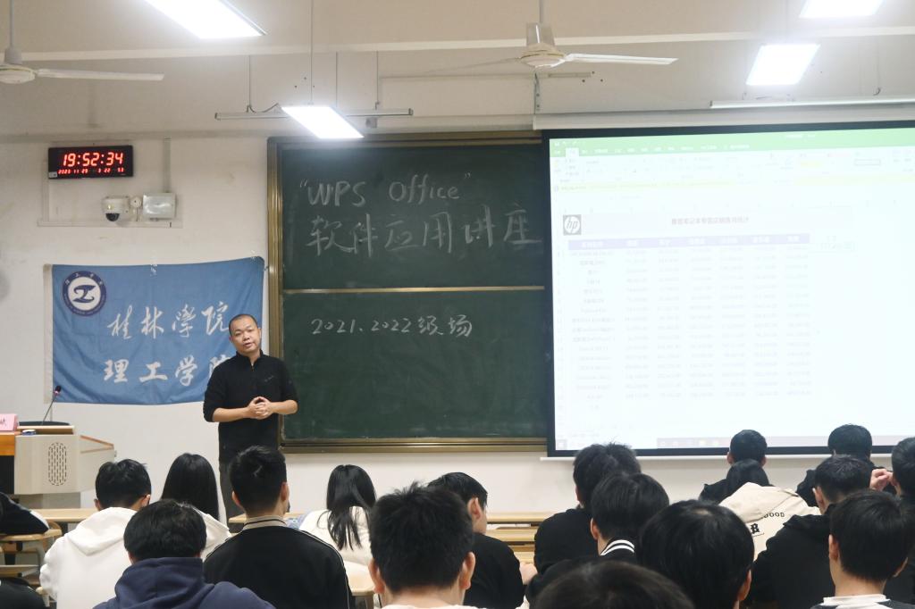 11月29日至12月1日,理工学院联合金山办公认证培训讲师团在1309、1315教室举办WPS Office软件应用讲座。金山KCT讲师唐斌、杭伟,理工学院公共计算机教研部负责人曾显葵出席讲座,理工学院各年级学生参会学习。