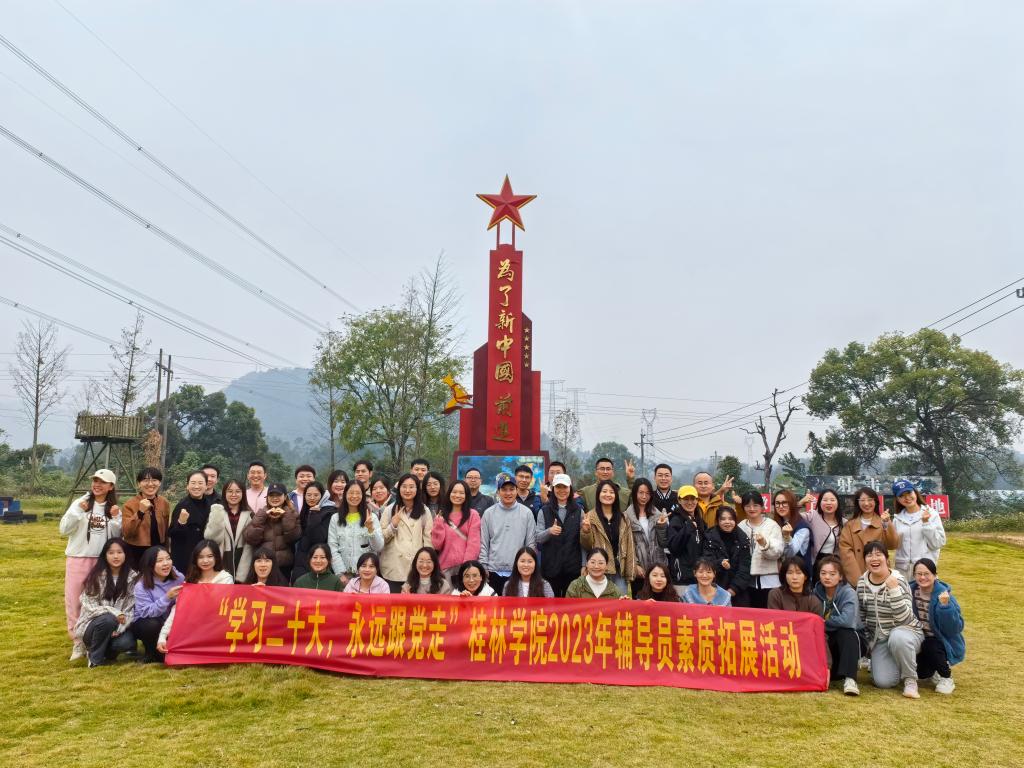 为进一步加强辅导员队伍建设,增强辅导员的团队意识和能力,12月9日我校在灵川县革命传统教育基地举办以“学习党的二十大,永远跟党走”为主题的辅导员素质拓展活动。学生事务处(部)处(部)长江仿和全体专职辅导员参加活动。