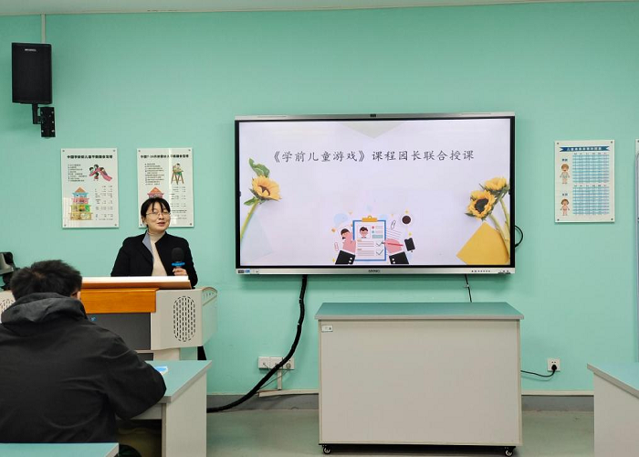 为进一步落实学前教育专业协同育人、课证融合的培养路径,促进学生理论与实践相结合,深化推进学前教育专业人才培养应用型改革,学前教育教研室邀请桂林市机关第三幼儿园陈榕园长来到《学前儿童游戏》课堂,协同学前教育教研室武文斯老师、海颖老师开展联合授课教学活动。