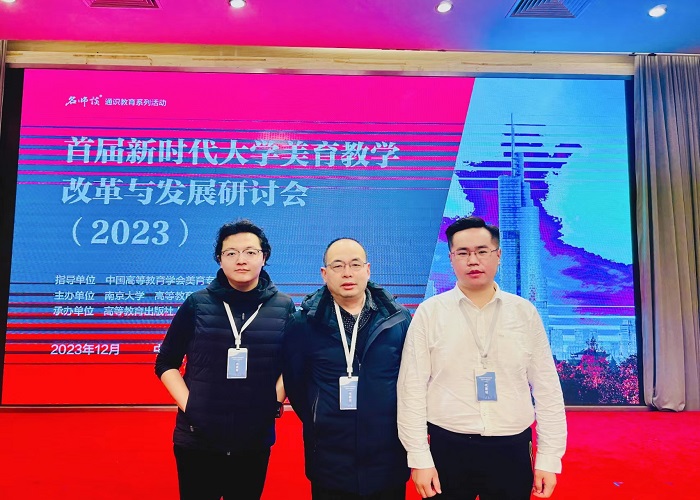 美育是德智体美劳“五育并举”的重要一环,是审美教育、情操教育、心灵教育,也是丰富想象力和创新意识的教育。为推进大学美育教学体系和课程建设,南京大学与高等教育出版社于2023年12月15日至17日在江苏南京举办“首届新时代大学美育师教学改革与发展研讨会”,全国60余所高校参加。我校教育学院党总支书记周杰、副书记宋丹阳、教师侯世尧受邀参加此次研讨会。
