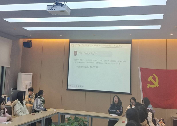 教育学院相关党支部书记张梅洁、梁琪老师开展以“锤炼坚强党性 自觉清廉守规”为主题的纪律教育课,围绕锤炼党性的必要性、切实解决锤炼党性的突出问题、践行锤炼党性的内在要求三方面,带领支部成员进一步理解锤炼党性的重要性。