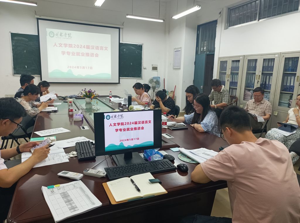 5月17日,人文学院在2108会议室召开2024届汉语言文学专业就业推进会。学院党总支书记、副院长庞一飞,副院长陈锴,党总支副书记韦微,中文类专业教师以及2024届汉语言文学专业辅导员参加会议。