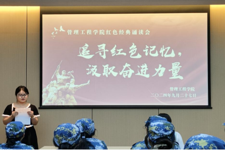 为增强新生爱国主义教育,追寻红色记忆,汲取奋进力量,9月27日下午,管理工程学院在“一站式”学生社区开展红色经典诵读会。管理工程学院学生社区党支部全体成员、2024级新生代表参加了本次活动。本次活动由管理工程学院学生社区党支部书记主持。