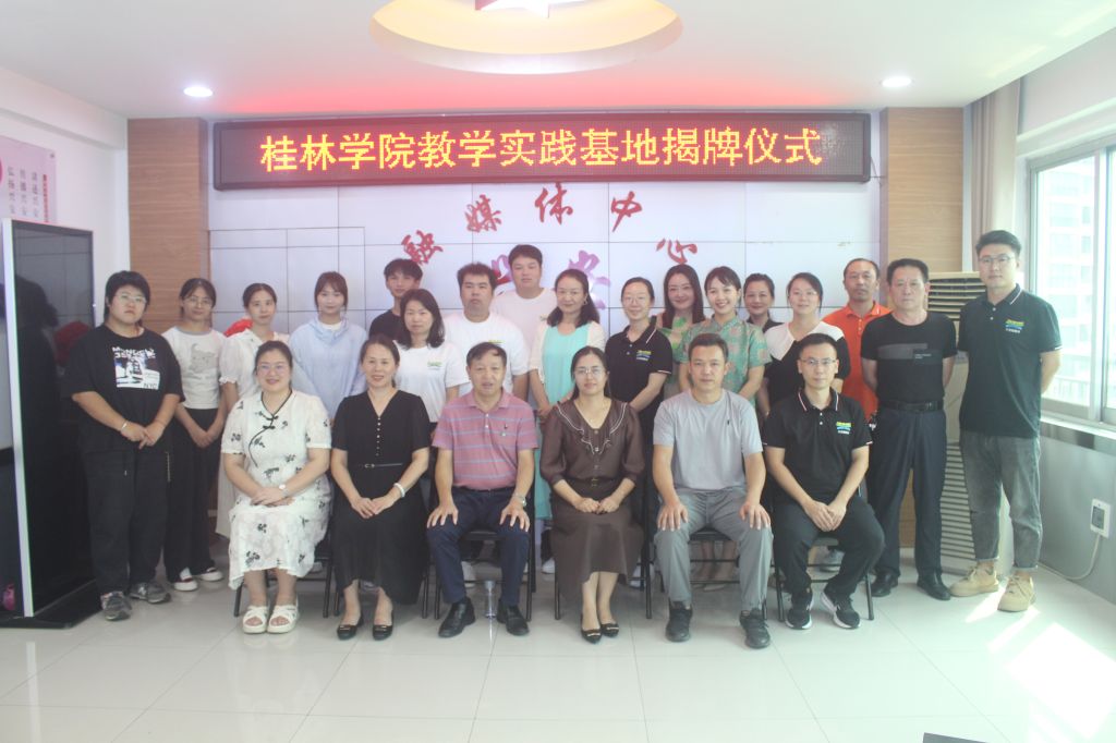 9月29日上午,传媒与新闻学院与兴安县融媒体中心实践教学基地揭牌仪式在兴安融媒体中心六楼会议室举行。兴安县融媒体中心主任兼兴安县委宣传部副部长邓桂荣、桂林学院传媒与新闻学院院长、党总支书记共同完成揭牌仪式。兴安融媒体中心副主任肖帆、黄振开及中心全体成员,传媒与新闻学院广播电视编导专业专任教师及实习学生参加揭牌仪式。