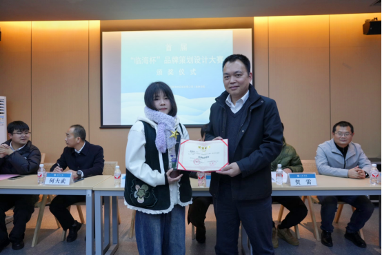 1月9日下午,由城市设计学院与广西自贸区供应链有限公司共同举办的首届“临海杯”品牌策划设计大赛颁奖仪式在杉湖家苑一站式学生社区举行。学校副校长杨庆庆、广西自贸区供应链有限公司董事长苏杰、副董事长何大武、总经理黄铭等出席颁奖仪式。城市设计学院负责人以及2025届师生代表参加活动,仪式由城市设计学院负责人主持。