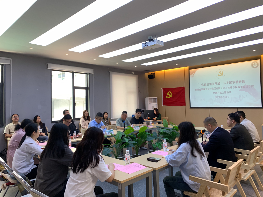 3月26日上午,城市设计学院与桂林建筑规划设计集团有限公司(以下简称:设计集团)在学校衫湖家苑一站式学生社区开展主题为“党建引领促发展、书香筑梦谱新篇”的党建共建活动,活动内容包括读书分享会、书籍捐赠等。设计集团党委书记陆卫坚,建筑设计二院党支部书记、院长龚毅,设计集团机关党支部、设计集团二院党支部党员代表;城市设计学院领导班子,相关教研室教师党员,学生社区党支部师生党员,共40多人参加活动。