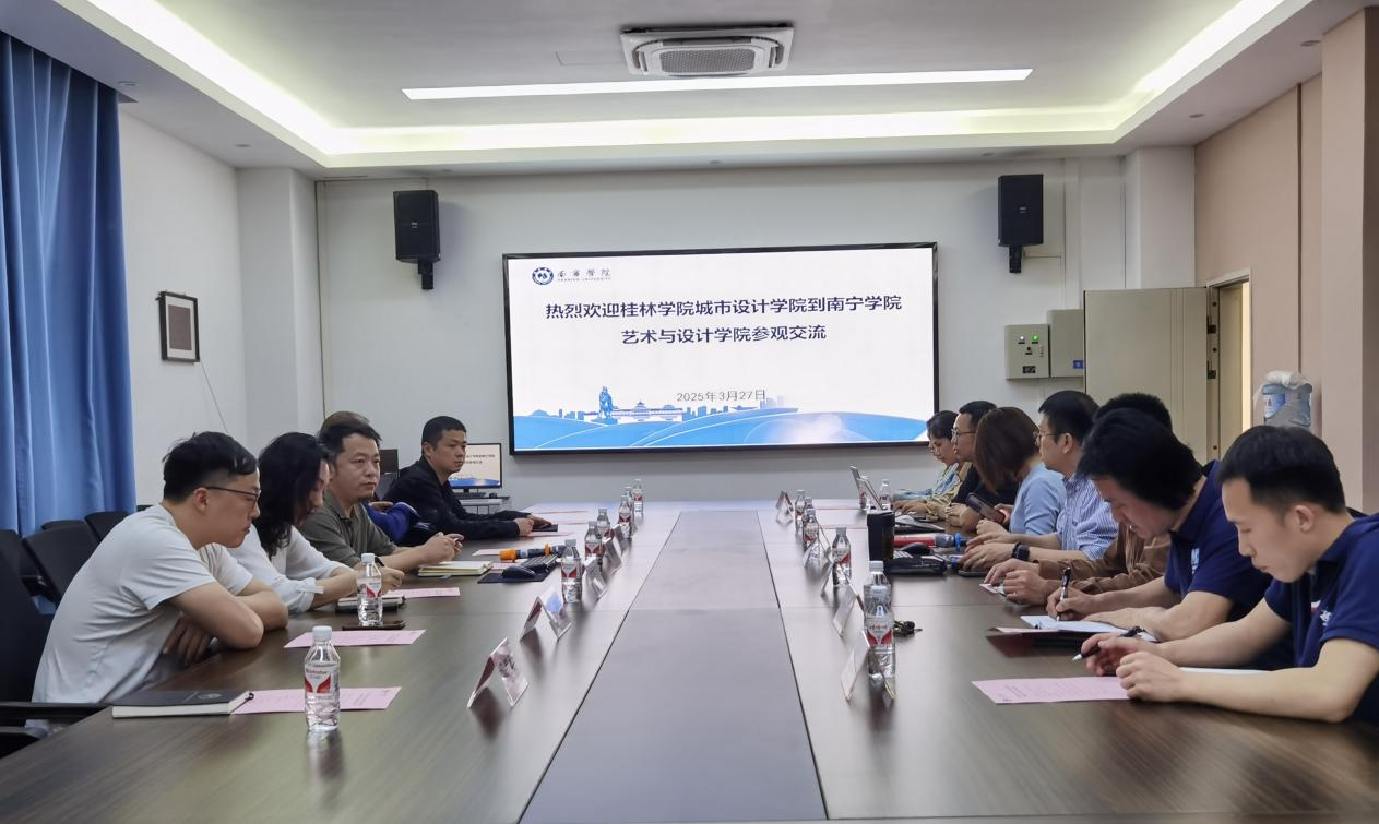 3月27日下午,城市设计学院由党政领导带队,一行6人赴南宁学院艺术与设计学院学习交流。南宁学院艺术与设计学院院长黄宇、党总支副书记岑铭君、副院长王春伟以及各教研室、各部门负责人接待了来访团一行。
