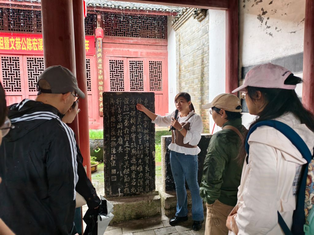 在讲解员的引导下,党员们走进横山村陈氏宗祠,深入了解了这位清代名臣的廉政事迹。陈宏谋一生秉持“清、廉、勤、实、慎、教”六字从政理念,为官48年间历经12省要职,始终勤政为民、廉洁齐家。宗祠内陈列的乾隆御赐诗刻石碑以及家训摘录,生动诠释了“以民心为己心,视官事如家事”的为官哲学。党总支副书记宣读《信息工程学院党总支廉洁端午倡议书》,倡议全体师生党员要带头践行“崇廉拒腐、尚简戒奢”的理念,严格遵守廉洁自律各项规定,坚决抵制“四风”问题,营造风清气正、文明健康的节日氛围。党总支书记在活动总结时强调,学校正处于迎接本科教学合格评估的关键时期,要以“零容忍”态度整治懒政怠政,以清正廉洁的政治生态保障教育事业高质量发展。