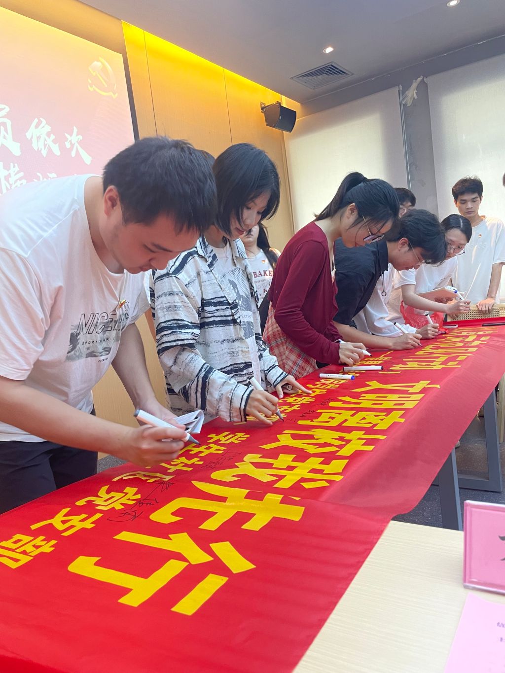 一段成长视频《青春向党・砥砺前行》为欢送仪式拉开仪式序幕。28名毕业生党员依次分享思想蜕变,学生党员王友林感慨:“党员身份不仅是荣誉,更是责任担当。”随后,赵度稳代表全体毕业生宣读《文明离校倡议书》,与会党员在倡议横幅签名承诺。