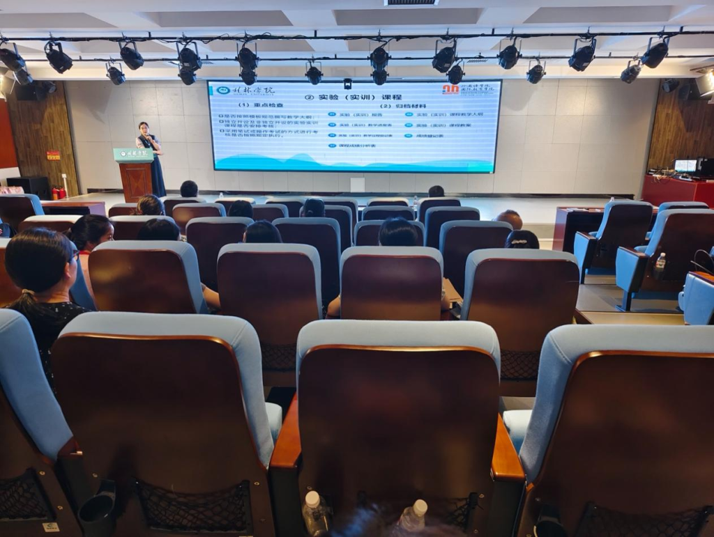 学院副院长、评建办主任围绕评估工作要求,就暑期需完成的七项任务作了具体布置,包括2025级人才培养方案修订、教学档案归档、2026届英语及商务英语专业毕业设计系统填报等,同时从专业评估标准、时间节点及现存问题三方面作详细说明,重点汇报了需检查的十项核心材料。