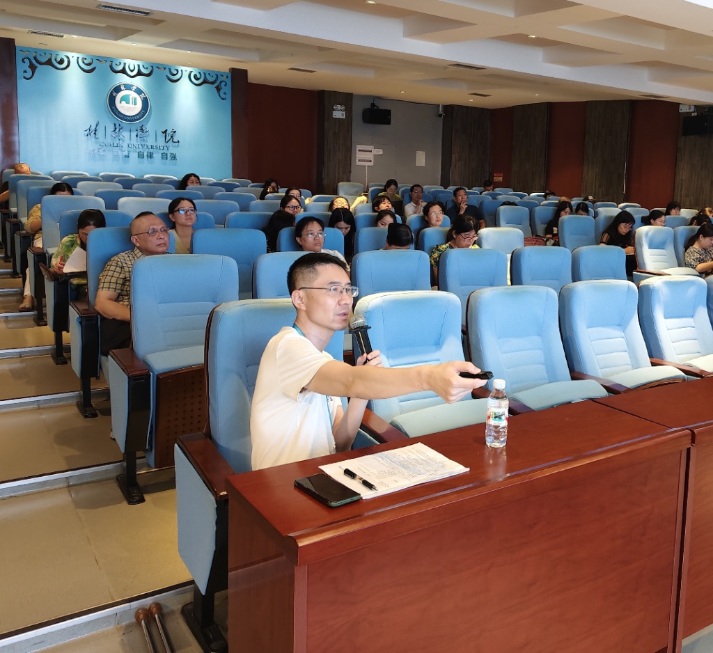 随后,党总支书记总结了本学期工作,亮点突出。党建方面,深化理论学习,“广西三月三”活动获媒体报道,斩获校级思政项目奖项;党建与业务融合紧密,组建5支教师党员先锋队,多人获学校优秀共产党员称号。教学上,获评“2024年学风建设优良学风学院”,评估工作扎实推进,课堂教学成效获专家认可;师资队伍建设成果显著,获全国商科教育科研课题10项,校级教学成果奖2项等。他对学院的就业工作、辅导员队伍建设及信息化领航课改等工作亮点表示肯定,同时对暑期20项重点工作进行了部署。