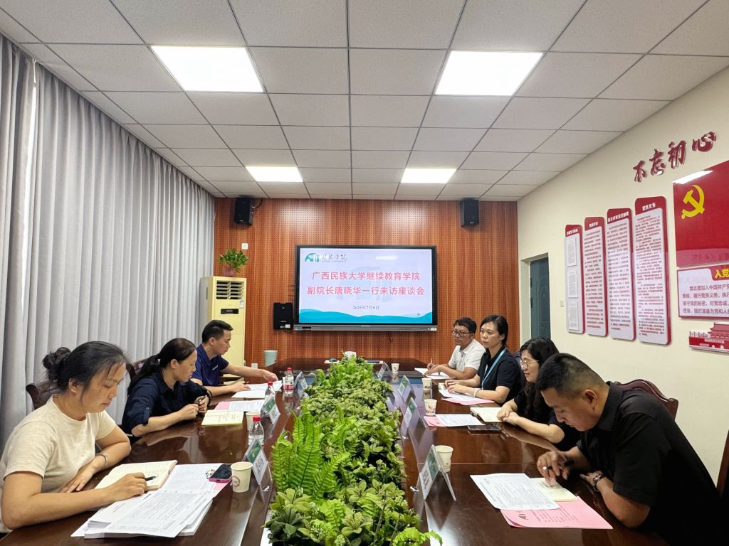 继续教育学院负责人对广西民族大学继续教育学院一行表示热烈欢迎,对高等学历继续教育招生的开展情况和迎接校外教学点年检的筹备情况作了介绍及说明。