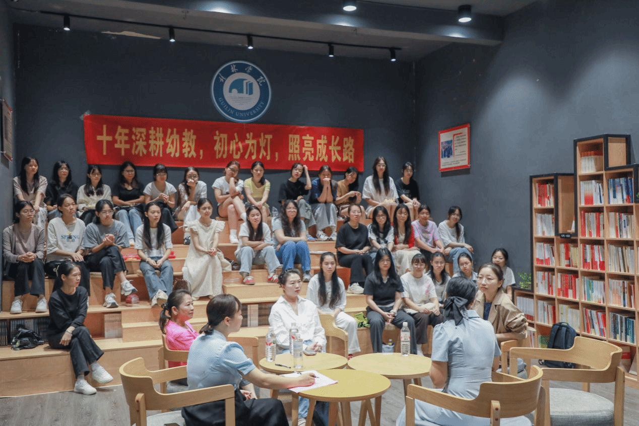 为了进一步推进学前教育民办高校优势特色专业项目的建设,搭建“高校教师-幼儿园教师-学前教育师范生”的理论知识学习与实践教学相结合的教育平台,10月29日,桂林学院学前教育专业2011级优秀校友、现任桂林市三皇路幼儿园骨干教师张业叶重返母校,以“十年深耕幼教:初心为灯,照亮成长路”为主题,为学前教育专业的在校生带来一场真挚而深刻的教育分享。学前教育专业负责人黄红韩、教研室主任王丽娟,以及专任教师海颖、张桂秋、容思慧等共同出席了本次活动。